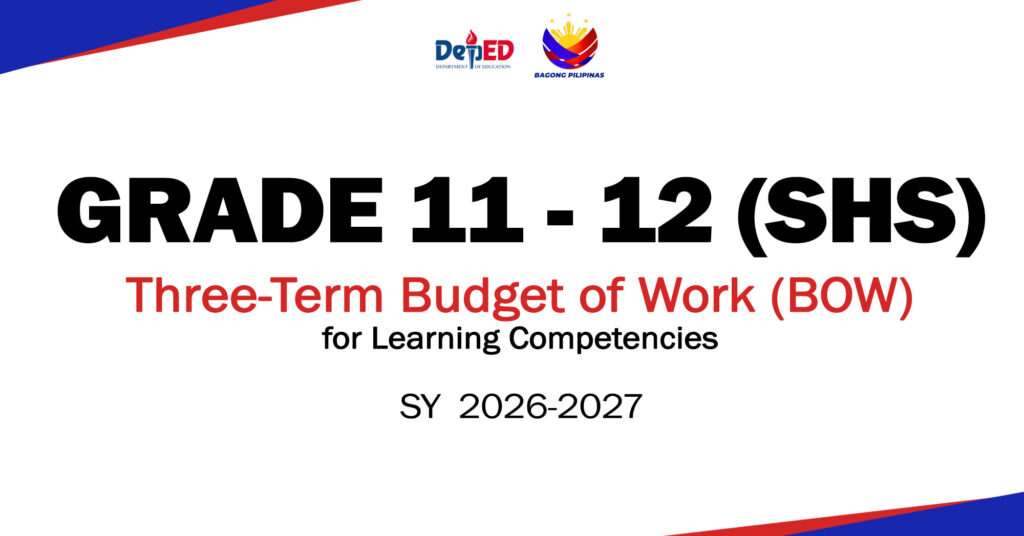 The Budget of Work for Grades 11 to 12 supports the more specialized and performance-based nature of senior high school education. At this level, learners take core subjects and track-specific courses that prepare them for higher education, employment, entrepreneurship, or middle-level skills development. Because of this, instruction must be well-organized, focused, and aligned with the goals of each learning area.